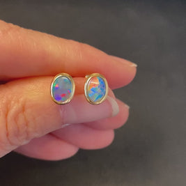 Ohrringe mit Doublet-Opalen aus Australien, gefasst in 14 Karat Gold.