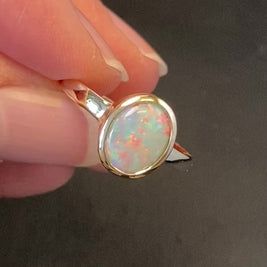 Ring mit echtem massivem Kristallopal aus Australien, gefasst in 14 kt. Gold.