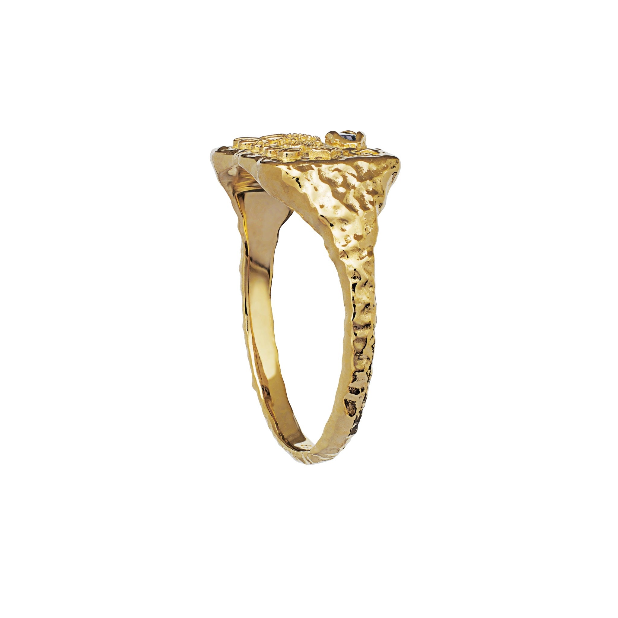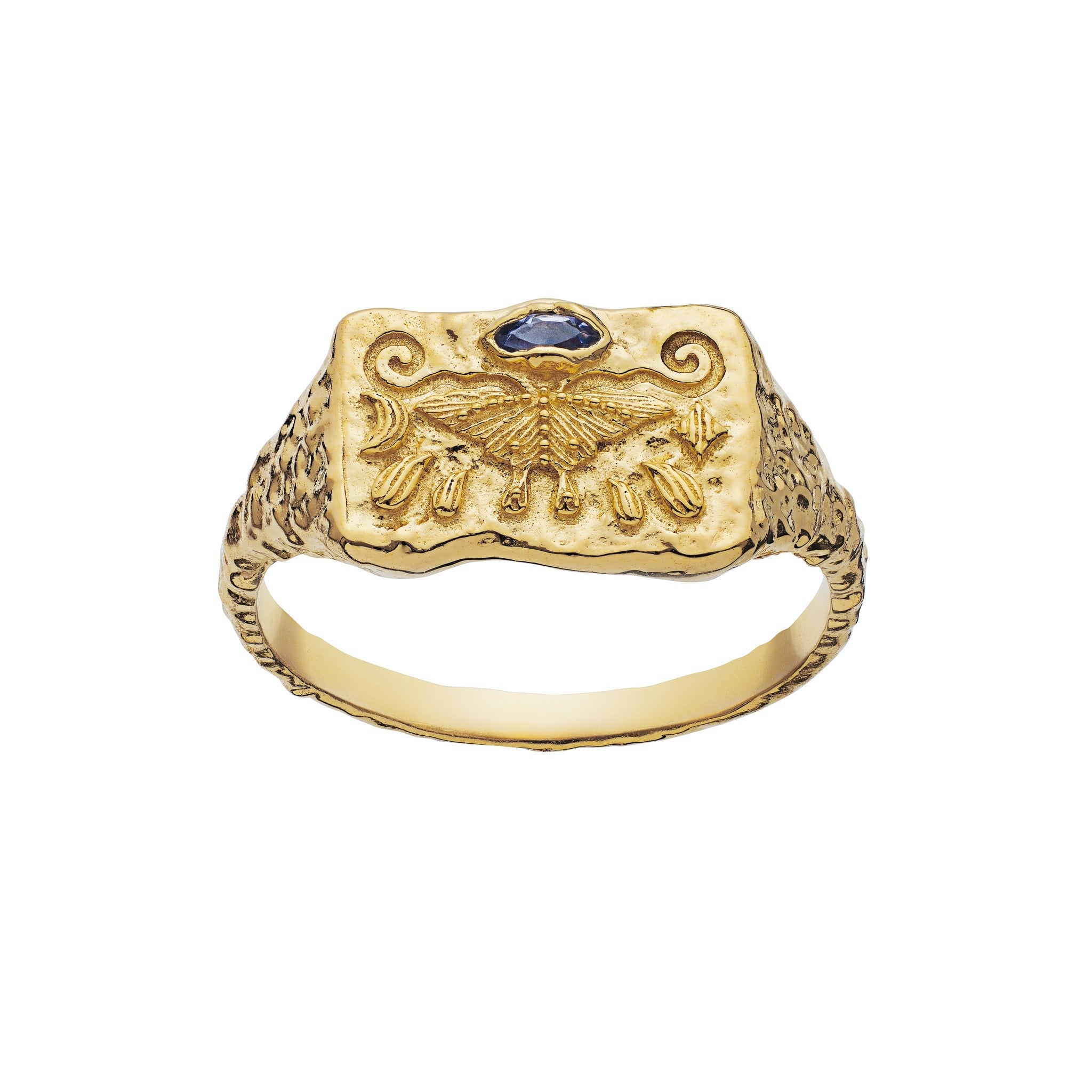 Creatures of the night are part of the inspiration behind Maanesten's AW21 collection, 'Moonrise magic', which explores the magic of the night. In many cultures, the nightjar stands for transformation and new beginnings and is the perfect symbol in the Gry ring in the company of a fine iolite, the stone for regaining balance. The collection is filled with pearl-dripping crescent moons and powerful gemstones, handmade details and classic, strong symbols. It appears understatedly alluring, gilded, enchanted.