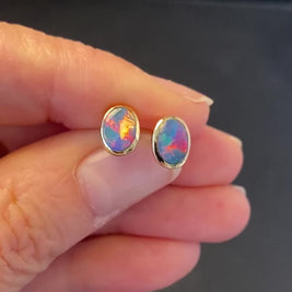 Ørestikker med doublet opaler indfattet i 14 karat guld.